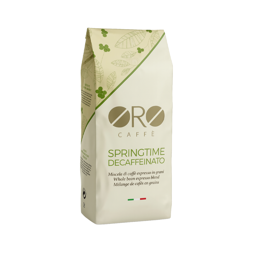 The Springtime Decaffeinato blend combines coffees from Perù and Ethiopia. In the cup, it presents an ochre-colored crema with fine texture. The aroma is pungent yet light, combining the strength of coffee with the lightness of decaffeination. On the palate, it has a slight acidity and freshness, with less than 0.10% caffeine. It provides fullness and flavor without caffeine, making it ideal any time of day